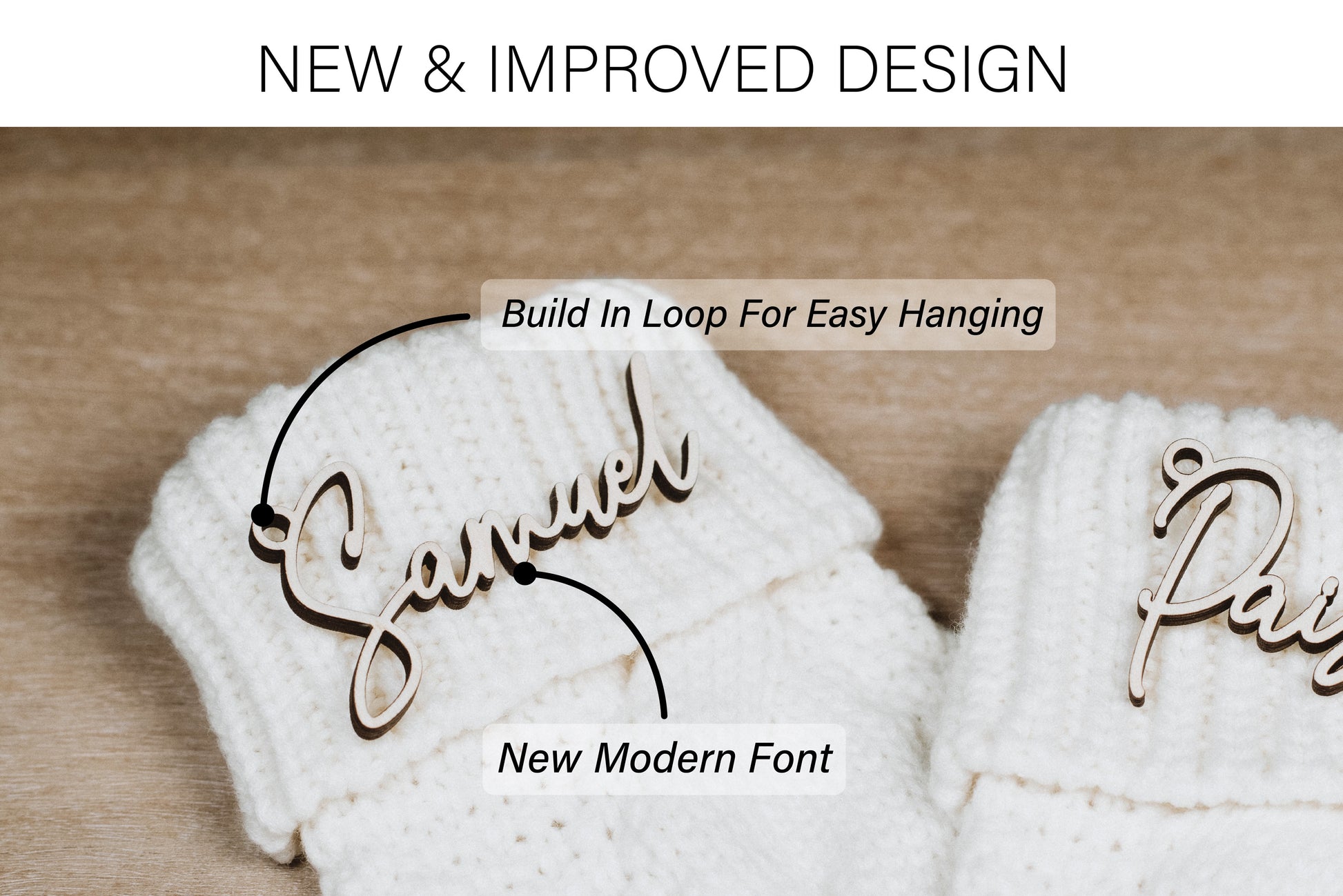 Tags + Stockings - Comes with a wooden tag, twine, and knitted stocking in the color your choose.